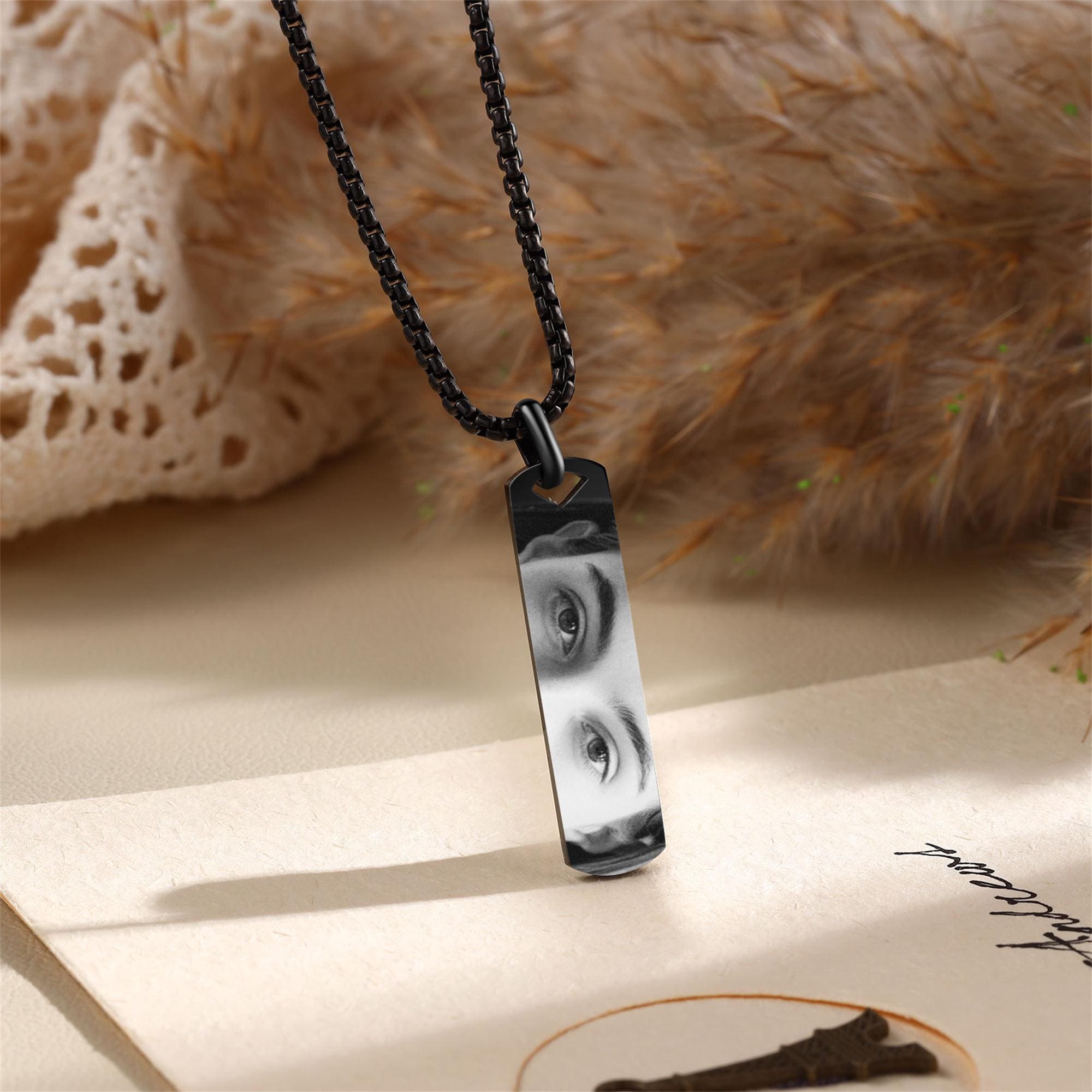 ★ This personalized eye photo necklace is a truly unique and meaningful piece of jewelry that captures a special memory in a beautiful way. With options in silver, black, and gold, you can choose the color that best suits your style and the recipient’s preferences. The centerpiece of the necklace features a detailed engraving of your own eye photo, making it an intimate and personal gift that symbolizes a deep connection with the person receiving it.